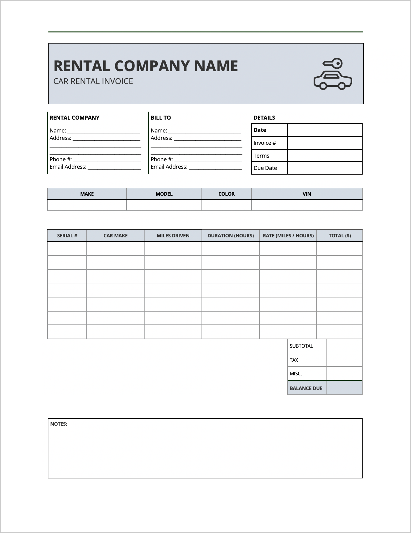 Car Rental Invoice Editable And Printable Template