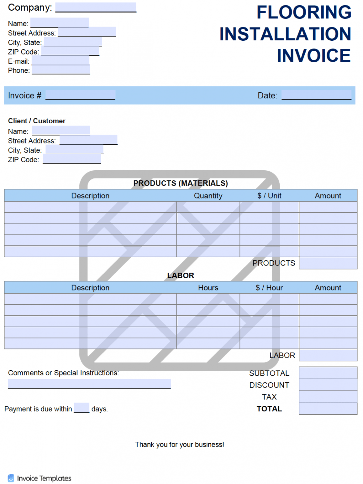 Printable Flooring Invoice Template – Manage Your Payment Process with a Free Invoice Printable – Quick, Polished & Free